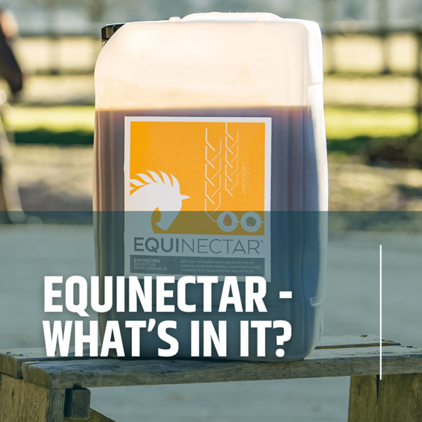 - Náš patentovaný sladový extrakt bohatý na enzymy : Toto je základní kámen EquiNectaru. Vyrábí se speciálně pro nás získáváním specifických odrůd ječmene, jejich sladováním a následným použitím speciálního nízkoteplotního procesu pro zachování enzymů přirozeně se vyskytujících v ječném sladu. Tento proces zajišťuje, že prospěšné enzymy zůstanou aktivní a poskytnou vašemu koni maximální nutriční přínos [1]. ( podívejte se na krátké video o výrobě EquiNectaru )